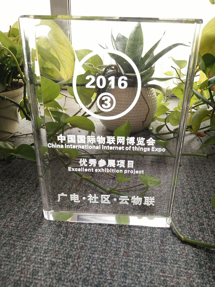 7月21日下午,在2016中国国际物联网博览会“广电·社区·云物联”现场表彰会上,长沙见旺云电子科技有限公司荣获首个云平台(社区云物联)“优秀参展项目奖”,并且获得由国家金卡工程认证的荣誉证书及奖杯。